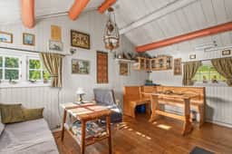 The property sits on a generous 1,263 square meter plot, offering ample space for outdoor activities or simply enjoying the natural beauty that surrounds you. The cabin is sold fully furnished, allowing you to move in and start enjoying your new retreat immediately.