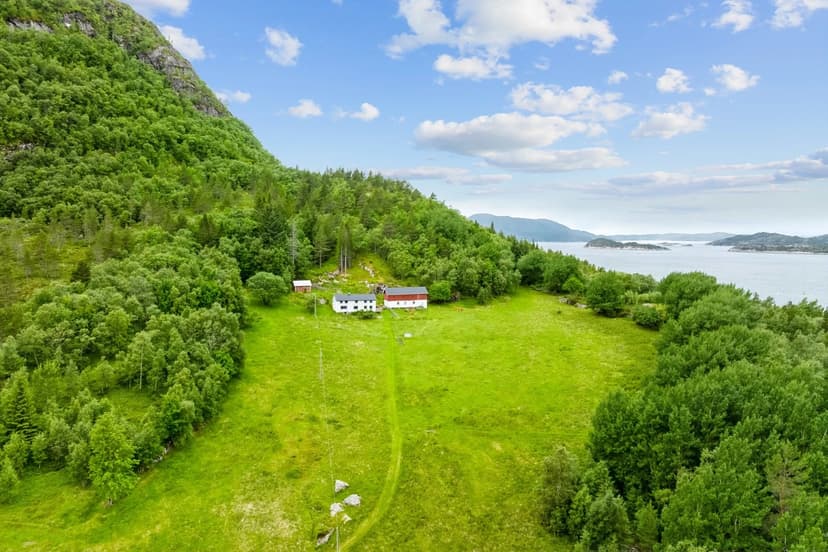 So what we have here at Flesvikveien 288 is a proper Norwegian farmhouse, situated right by the sea. The property covers over 630,000 square meters (yes, you read that right, that's hectares of land!), which is honestly great for anyone who's dreaming about space – whether you want to do a bit of small-scale farming, have some animals, or just need all of that nature and privacy, you get it here.