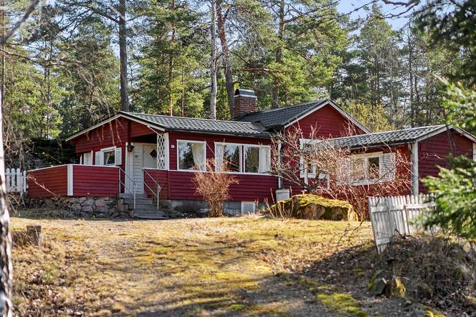 The plot itself is actually pretty large by Swedish summer cottage standards, right around 1,000 square meters, and it’s a real mix of woods and clearings. There’s a bit of garden, couple of tall pines, birch—looks lovely in both summer and autumn, honestly, but it still needs a bit of work if you want to take it to that next level. Kids, pets, or anyone who likes a big open space to play or garden will appreciate it. I find international buyers are always surprised by just how peaceful these spots are—here you get total privacy, you’re not right on top of the neighbors (Swedes really like their own space). Even during holiday season it’s usually calm and quiet.
