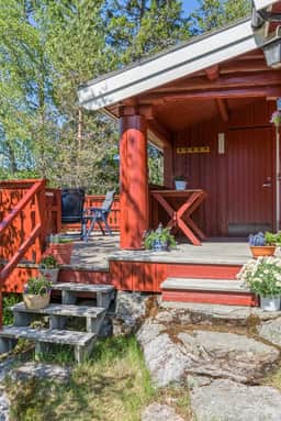 The surrounding area is family-friendly and peaceful, with a strong sense of community among cabin owners. The island offers safe swimming from smooth rocks, excellent fishing opportunities, and a tranquil environment for children to play and explore. The property is also suitable for hosting gatherings, with ample space for outdoor dining, barbecues, and campfires.